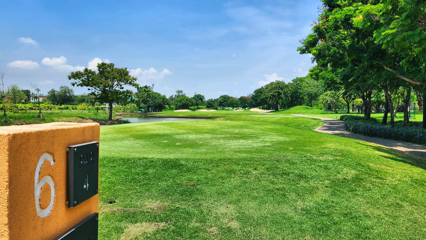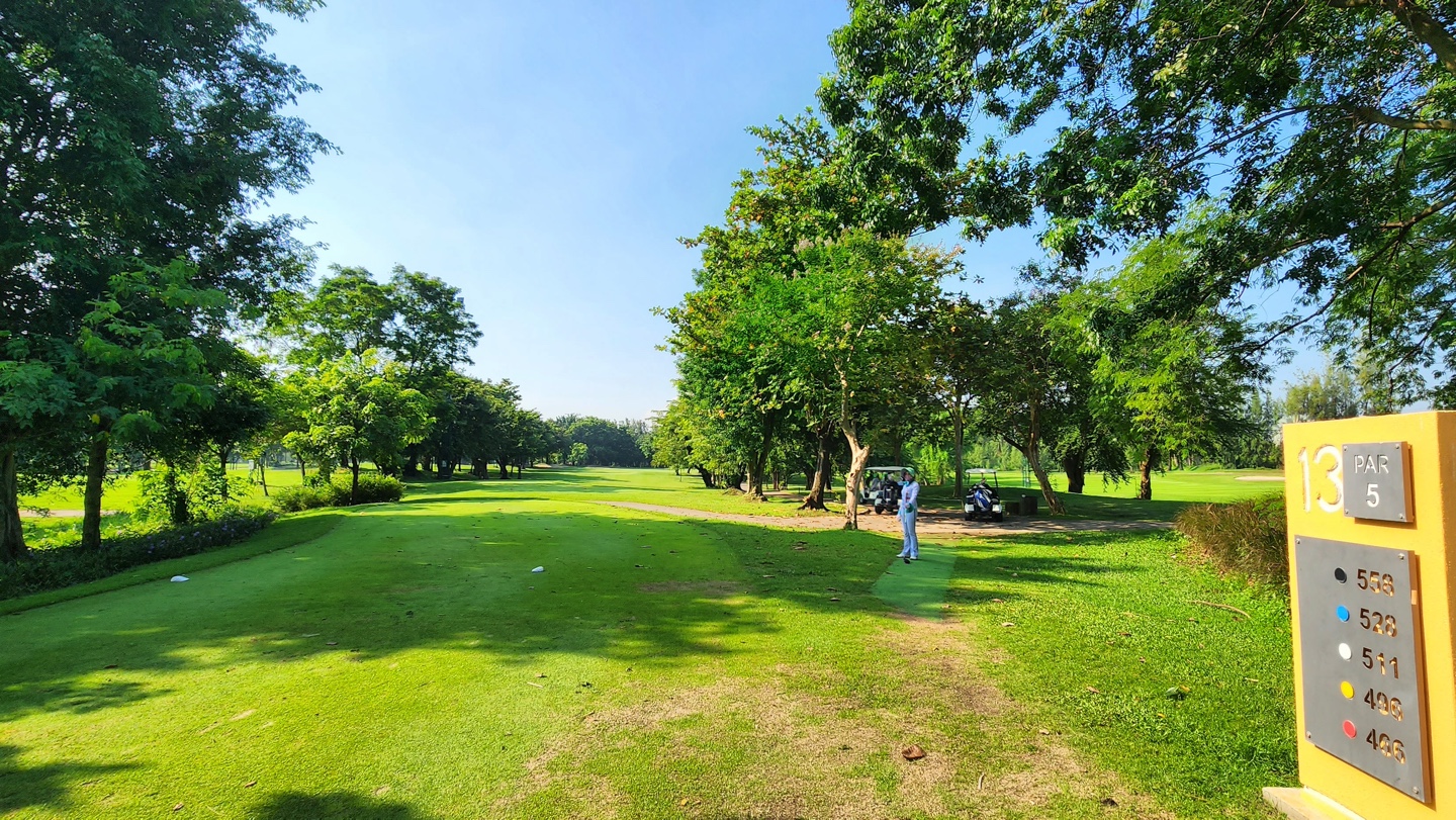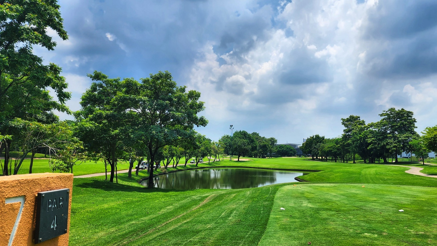 2000년에 태국 최초로 ISO 9001을 취득한 골프 코스로 티박스 부터 그린까지 S자 형태 대칭구조로 티박스 왼쪽은 워터 해저드, 오른쪽은 숲과 벙커가 도사리고 있습니다. 세컨샷 위치 오른쪽에 워터해저드는 왼쪽으로 OB가 있어 전체적으로 절묘한 조화를 이루는 평가를 받고 있는 홀입니다.