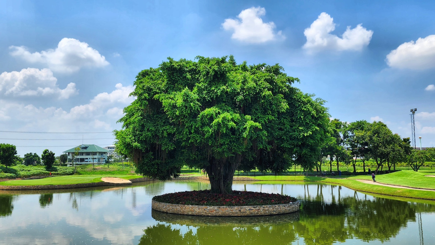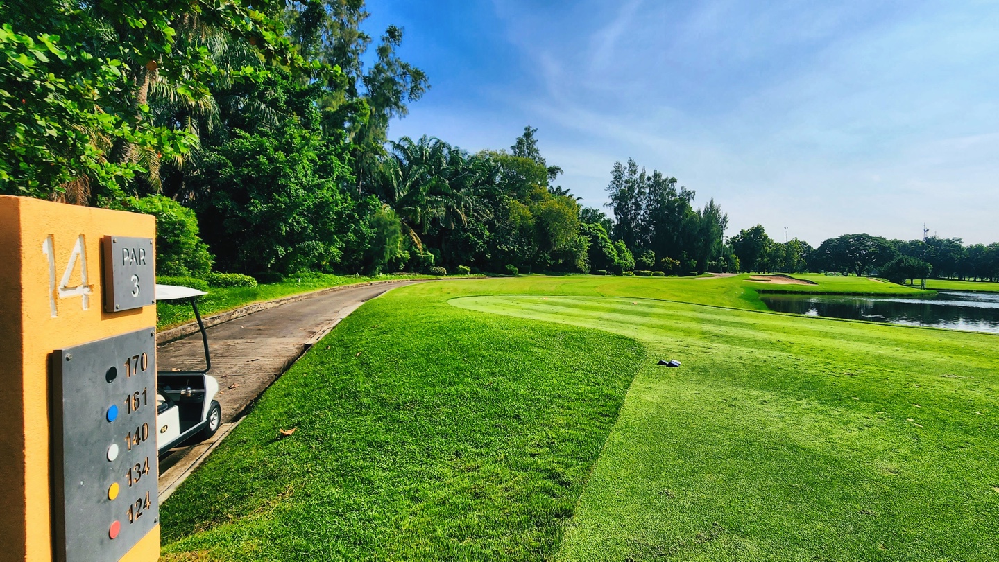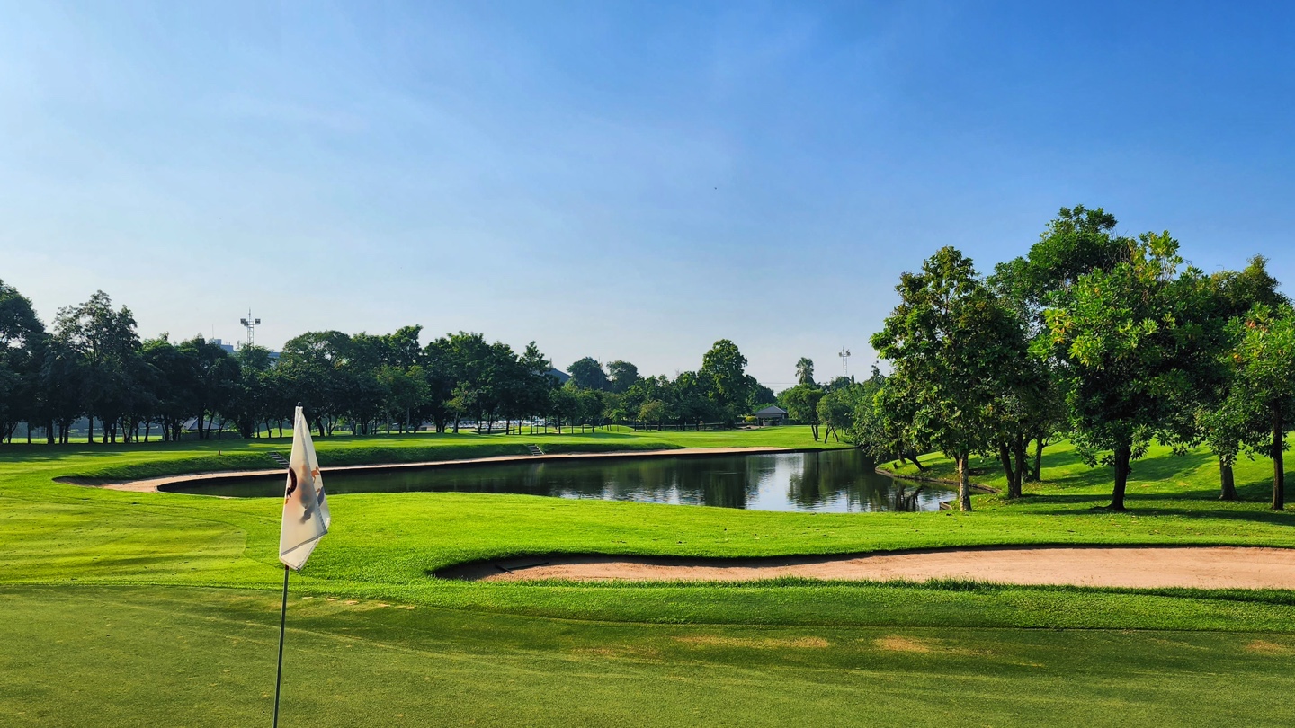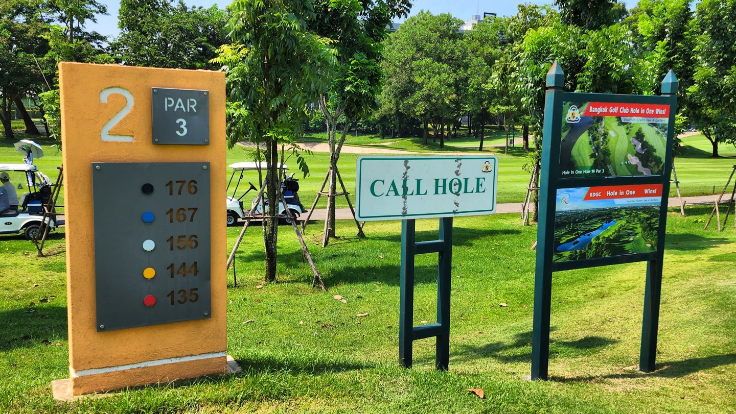 2000년에 태국 최초로 ISO 9001을 취득한 골프 코스로 티박스 부터 그린까지 S자 형태 대칭구조로 티박스 왼쪽은 워터 해저드, 오른쪽은 숲과 벙커가 도사리고 있습니다. 세컨샷 위치 오른쪽에 워터해저드는 왼쪽으로 OB가 있어 전체적으로 절묘한 조화를 이루는 평가를 받고 있는 홀입니다.