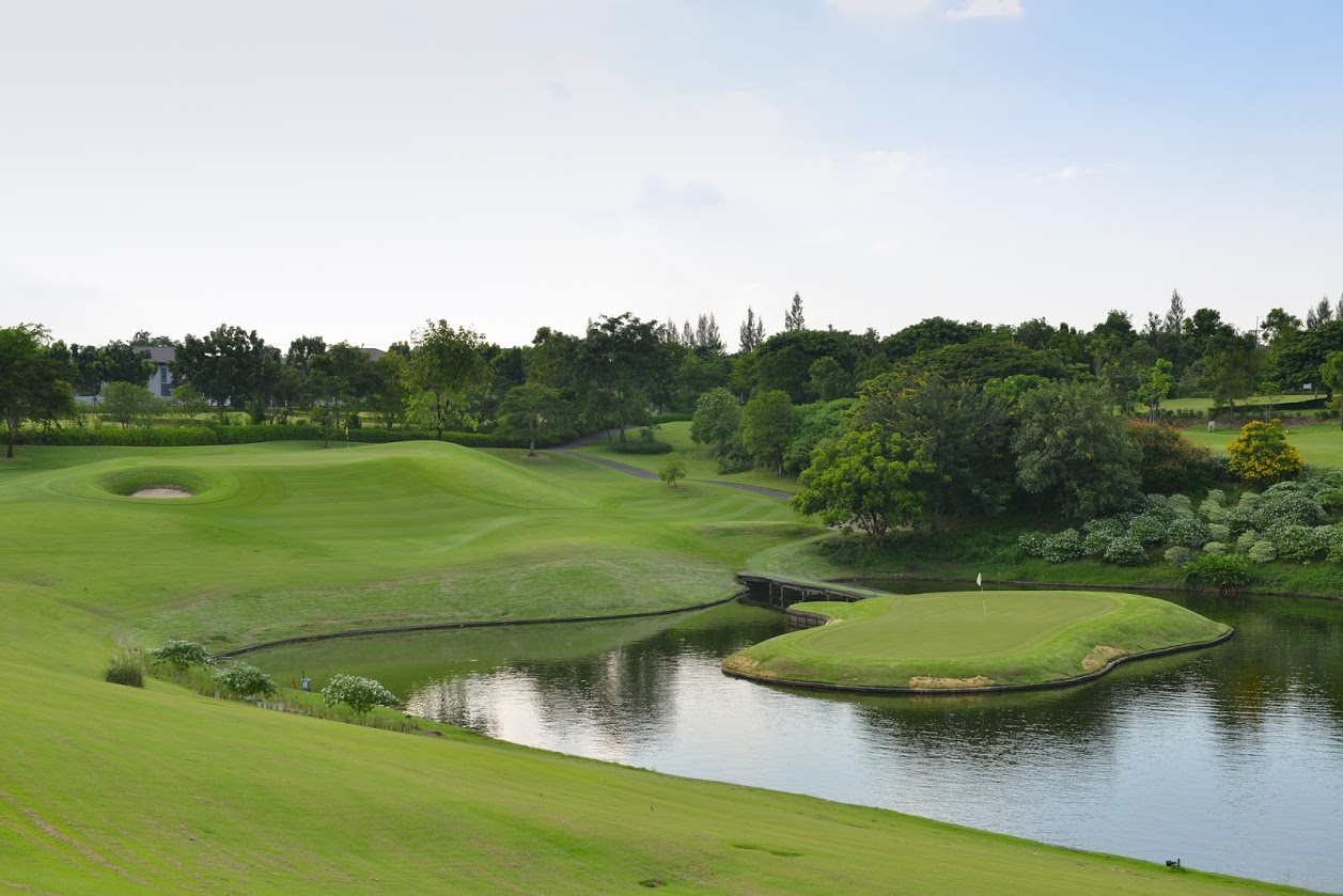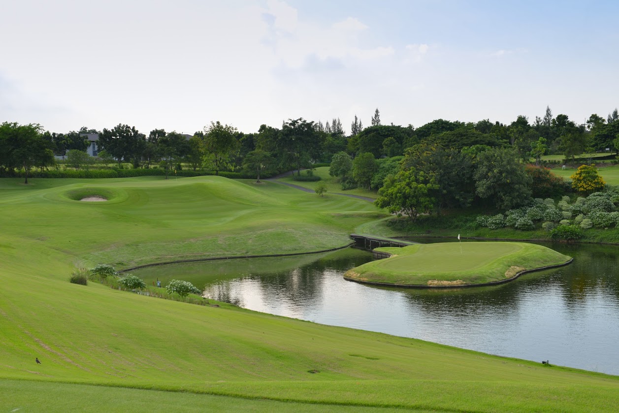 2000년에 태국 최초로 ISO 9001을 취득한 골프 코스로 티박스 부터 그린까지 S자 형태 대칭구조로 티박스 왼쪽은 워터 해저드, 오른쪽은 숲과 벙커가 도사리고 있습니다. 세컨샷 위치 오른쪽에 워터해저드는 왼쪽으로 OB가 있어 전체적으로 절묘한 조화를 이루는 평가를 받고 있는 홀입니다.